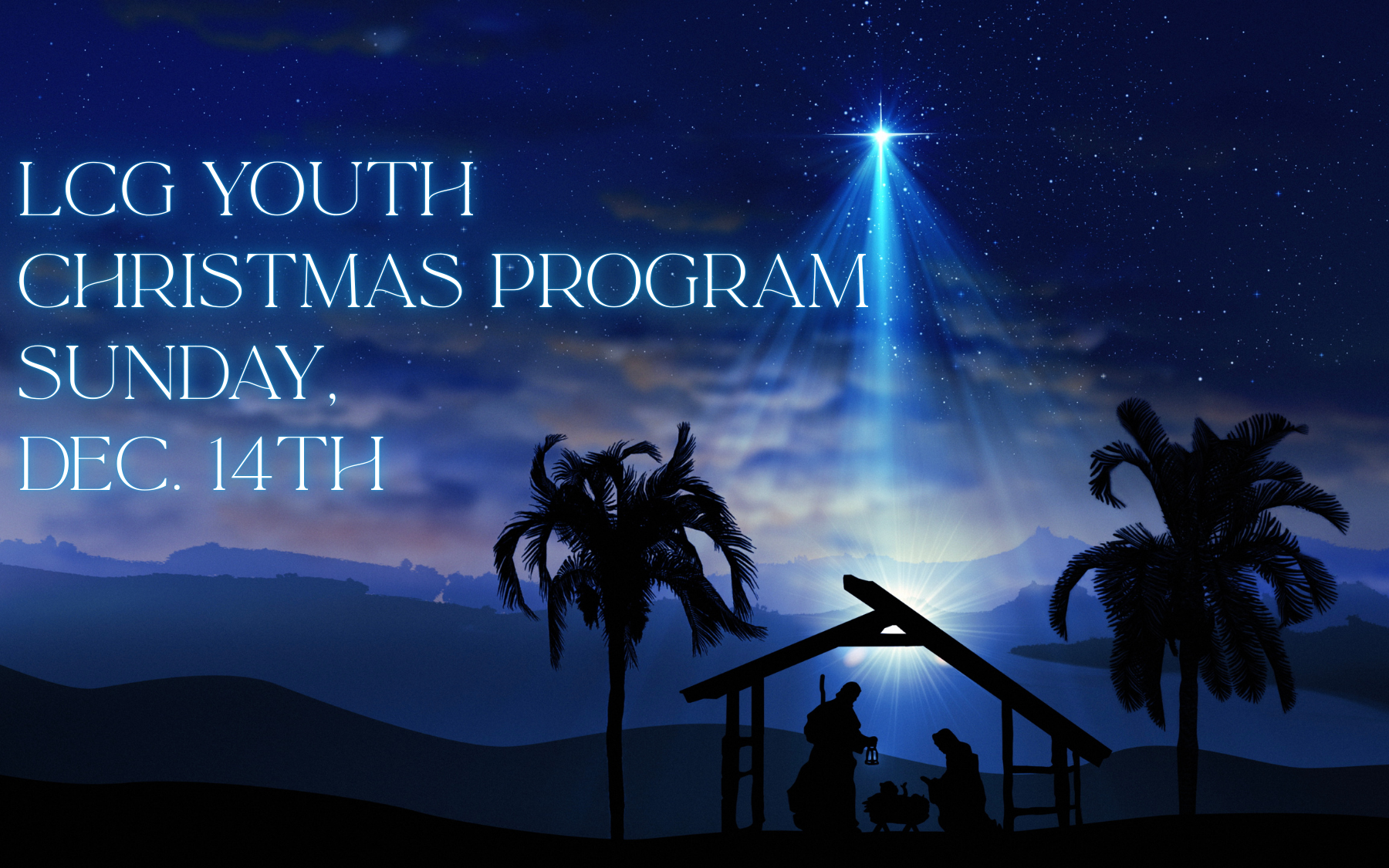 Our LCG Youth Christmas program will take place on Sunday, Dec. 14th during worship service. Preparation/Practices will be held on Nov. 20th and Dec. 7th during Sunday School. Extra rehearsals will be scheduled on Dec. 13th or 14th, if needed. Stay tuned for more details. If you would like to participate or assist in preparations, please contact Pastor Andy.